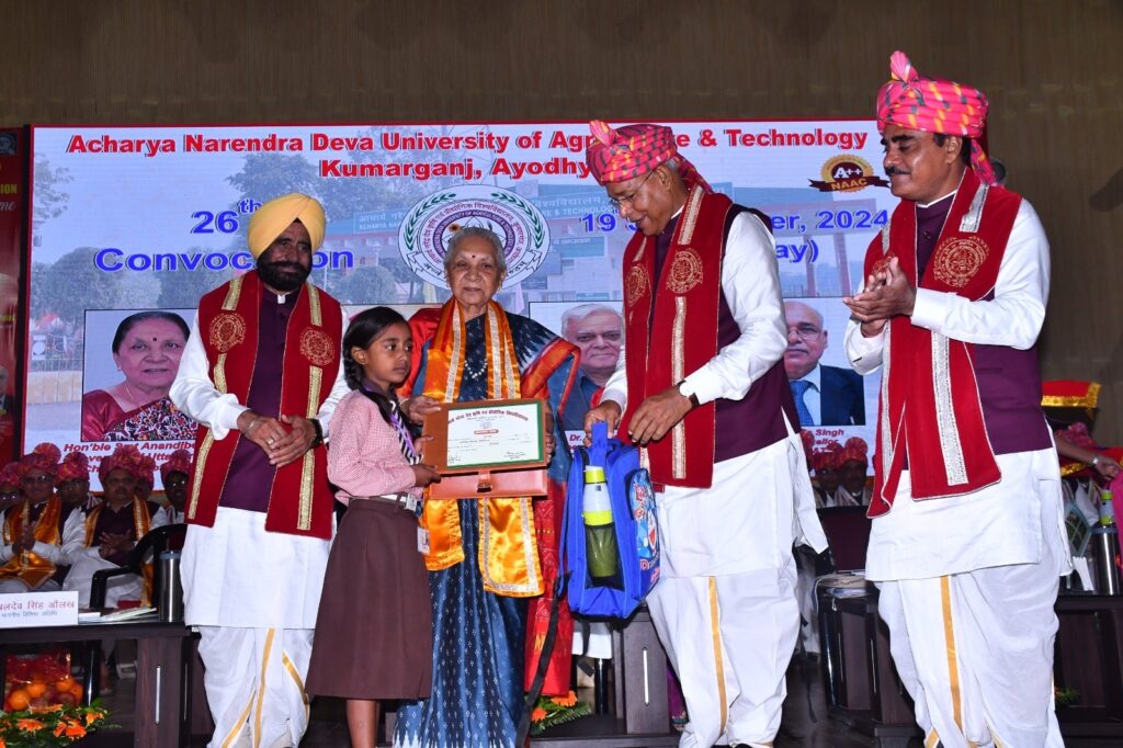 अयोध्या/लखनऊ, 19 सितंबर 2024: आचार्य नरेंद्र देव कृषि एवं प्रौद्योगिकी विश्वविद्यालय, अयोध्या का 26वां दीक्षांत समारोह प्रदेश की राज्यपाल एवं राज्य विश्वविद्यालयों की कुलाधिपति आनंदीबेन पटेल की अध्यक्षता में संपन्न हुआ। समारोह में कुल 595 छात्र-छात्राओं को उपाधियाँ प्रदान की गईं, जिनमें से 27 मेधावियों को स्वर्ण पदक दिया गया। स्नातक, परास्नातक, और पीएचडी स्तर पर छात्रों को सम्मानित किया गया, जिसमें 330 स्नातक, 238 परास्नातक और 27 पीएचडी छात्रों ने उपाधियाँ प्राप्त कीं।