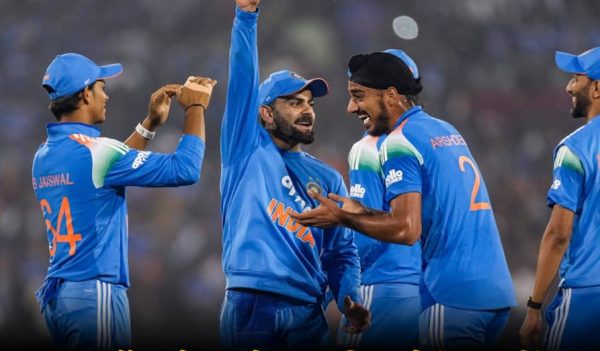 रोहित शर्मा, यशस्वी जायसवाल, विराट कोहली, रुतुराज गायकवाड़, वाशिंगटन सुंदर, केएल राहुल (कप्तान और विकेटकीपर), नितीश कुमार रेड्डी, रविंद्र जडेजा, हर्षित राणा, कुलदीप यादव, अर्शदीप सिंह.