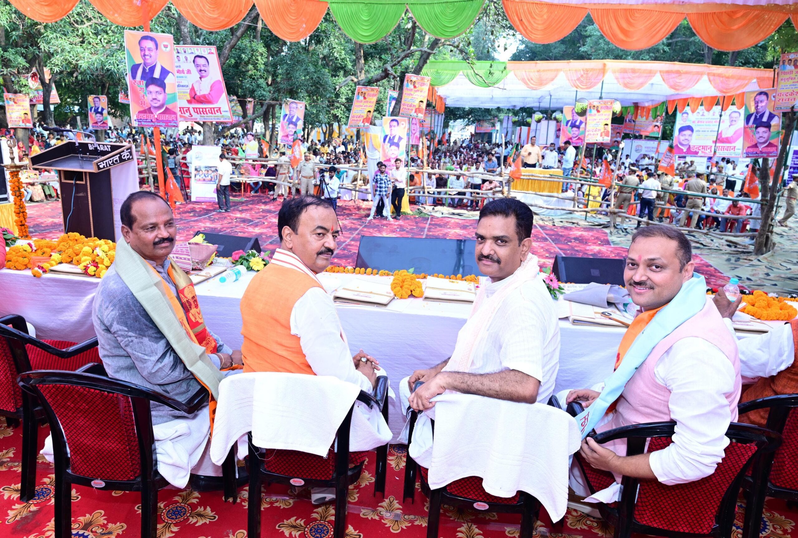 उपमुख्यमंत्री केशव प्रसाद मौर्य ने कार्यक्रम को सम्बोधित करते हुये कहा कि आज गहनाग बाबा की पावन धरा पर मुझे आने का अवसर प्राप्त हुआ है। उन्होंने कहा कि जनपद अयोध्या में केंद्र एवं प्रदेश सरकार के द्वारा चहुंमुखी विकास हो रहा है इसका श्रेय हमारे प्रधानमंत्री नरेन्द्र मोदी जी व प्रदेश के यशस्वी मुख्यमंत्री योगी आदित्यनाथ जी को जाता है। उन्होंने कहा कि सरकार द्वारा गरीबों को मुफ्त राशन योजना के तहत नियमित राशन दिया जा रहा है तथा आयुष्मान योजना के तहत गरीब वर्ग के व्यक्तियों को 5 लाख तक का मुफ्त इलाज मुहैया कराया जा रहा है। इसके साथ ही ग्राम की समस्याओं के निस्तारण के लिए सरकार आपके द्वार (गांव की समस्या गांव में समाधान) चौपाल के माध्यम से त्वरित , गुणवत्तापूर्ण व समयबद्ध निस्तारण किया जा रहा है। उन्होंने बताया कि बी0सी0 सखी के माध्यम से लखपति दीदी योजना को ज्यादा से ज्यादा प्रचार प्रसार करते हुए गरीबों को बैंक की सुविधा प्रदान की जा रही है।