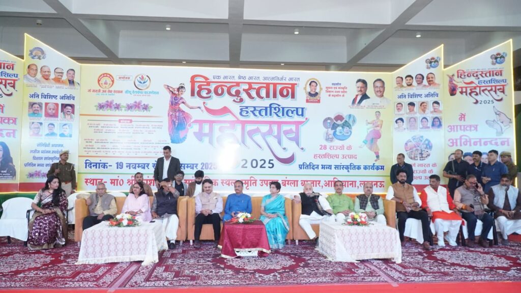 लखनऊ। सरोजनीनगर विधानसभा क्षेत्र के अंतर्गत स्मृति उपवन, आशियाना में बुधवार को ‘हिंदुस्तान हस्तशिल्प महोत्सव – 2025’ का भव्य आगाज हुआ।सरोजीनगर विधायक डॉ. राजेश्वर सिंह एवं पूर्व उप मुख्यमंत्री व राज्यसभा सांसद डॉ. दिनेश शर्मा ने सांस्कृतिक वैभव से परिपूर्ण इस महोत्सव का उद्घाटन दीप प्रज्वलित कर किया। 19 दिसंबर से 25 दिसंबर 2025 तक आयोजित होने वाला यह महोत्सव भारत के 28 राज्यों के उत्कृष्ट एवं विविध हस्तशिल्प उत्पादों का अनूठा प्रदर्शन करेगा, जो लखनऊवासियों को देश की कलात्मक परंपराओं का व्यापक परिचय प्रदान करेगा।