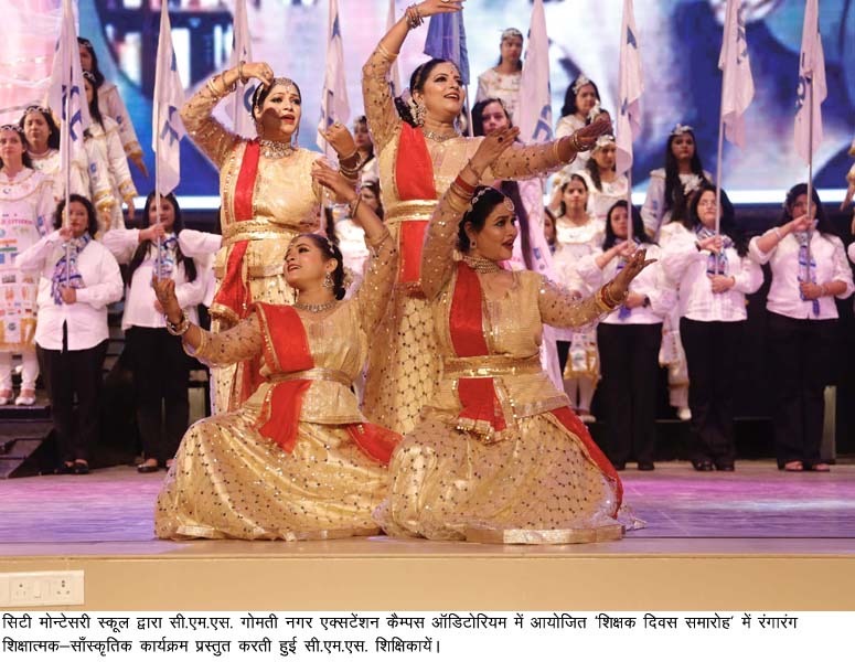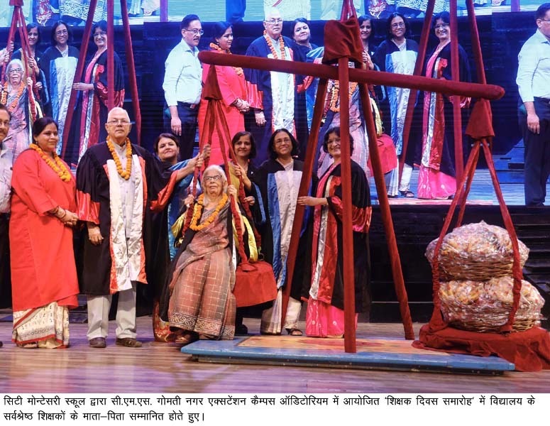 ‘शिक्षक दिवस समारोह’ में वर्ष 2023-2024 हेतु सर्वश्रेष्ठ शिक्षकों के साथ ही उनकी माताजी व पिताजी को सार्वजनिक रूप से सम्मानित किया गया। आई.एस.सी. सेक्शन में सी.एम.एस. महानगर कैम्पस की बायो-टेक्नोलॉजी की शिक्षिका सुश्री मनीषा मेहरोत्रा एवं आई.सी.एस.ई सेक्शन में सी.एम.एस. गोमतीन नगर प्रथम कैम्पस की इंग्लिश विषय की शिक्षिका सुश्री काकुल कुमार को वर्ष 2023-24 का सर्वश्रेष्ठ शिक्षक घोषित किया गया। इन दोनों शिक्षिकाओं की माताजी को फलों व फूलों से तौलकर जबकि पिताजी को शाल ओढ़ाकर सार्वजनिक तौर पर सम्मानित किया गया। इसके अलावा, सी.एम.एस. के विभिन्न कैम्पस की प्रधानाचार्याओं व शिक्षकों को भी नगद धनराशि व आकर्षक उपहारों से पुरष्कृत कर सम्मानित किया गया। कुल मिलाकर सी.एम.एस. के सभी शिक्षकों व कार्यकर्ताओं को नगद पुरस्कार व अन्य उपहारों से पुरष्कृत कर सम्मानित किया गया। समारोह में सी.एम.एस. शिक्षकों ने एक से बढ़कर एक शिक्षात्मक-साँस्कृतिक कार्यक्रमों की इन्द्रधनुषी प्रस्तुतियों से सभी को मंत्रमुग्ध कर दिया।