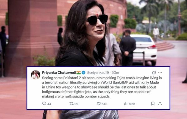 प्रियंका ने कहा, ‘कुछ पाकिस्तानी सोशल मीडिया अकाउंट्स तेजस क्रैश का मजाक उड़ा रहे हैं. सोचिए, एक आतंकवादी दे आतकंवादी देश में रहना, जो सच में वर्ल्ड बैंक और IMF के मदद पर जी रहा हो. जिसके पास दिखाने के लिए सिर्फ मेड इन चाइना के खिलौने हों, ऐसे लोगों स्वदेशी डिफेंस फाइटर जेट्स के बारे में बात करने में सबसे आखिरी में आना चाहिए. यह लोग सिर्फ सुसाइड बॉम्बर स्क्वॉड ही बना सकते हैं.’