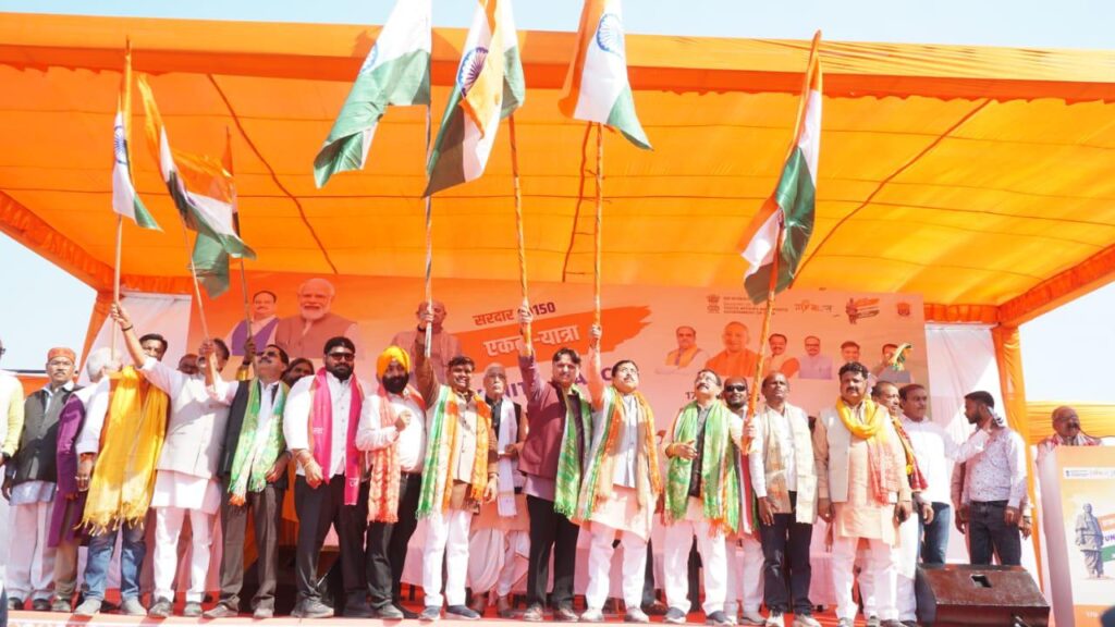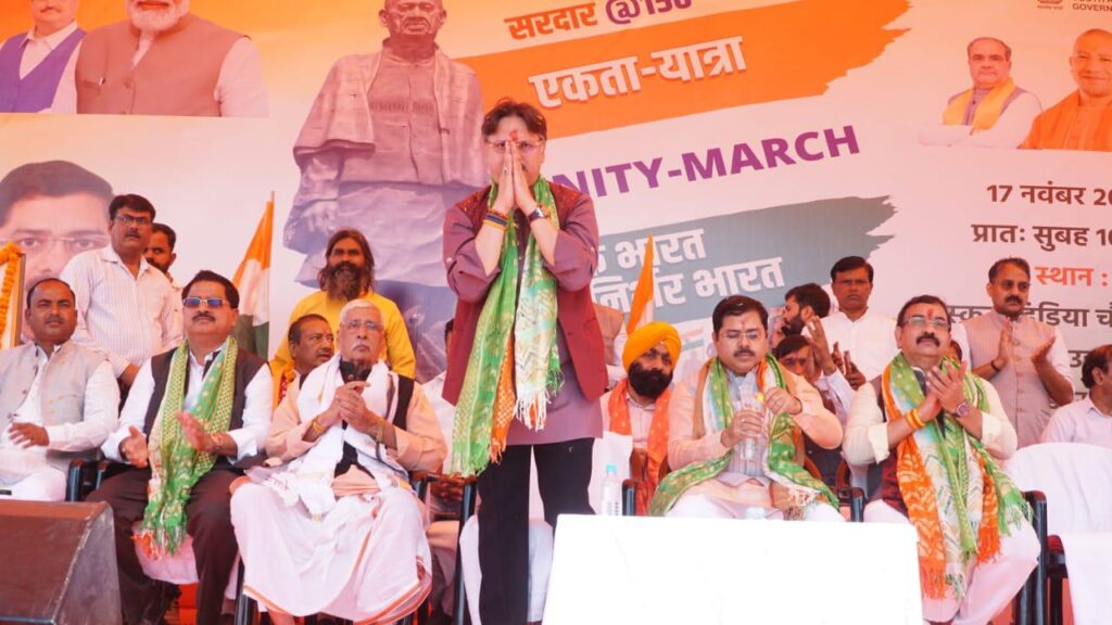लखनऊ: भारत की अखंडता के शिल्पी, भारत रत्न सरदार वल्लभभाई पटेल जी की 150वीं जयंती के उपलक्ष्य में रविवार को सरोजनीनगर में भव्य ‘सरदार @150 एकता यात्रा’ का आयोजन किया गया। यह ऐतिहासिक यात्रा स्कूटर इंडिया चौराहे से प्रारंभ होकर सैनिक इंटर कॉलेज ग्राउंड तक आयोजित हुई, जिसमें सैकड़ों नागरिकों ने उत्साहपूर्वक भाग लिया। करीब ढाई किलोमीटर लंबी इस पदयात्रा में आम नागरिकों, व्यापारियों, सामाजिक संगठनों और भाजपा कार्यकर्ताओं की व्यापक सहभागिता देखने को मिली। तिरंगा-झंडों, देशभक्ति गीतों और सरदार पटेल के संदेशों से वातावरण को राष्ट्रभाव की ऊर्जा से भर उठा। “एक भारत, श्रेष्ठ भारत” और “सरदार पटेल अमर रहें” के नारों ने पूरे मार्ग को गूंजायमान कर दिया।