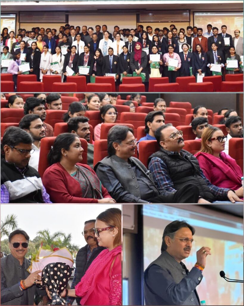 अपने प्रेरणादायी संबोधन में डॉ. राजेश्वर सिंह ने कहा कि आज देश के लाखों युवा राष्ट्रीय पात्रता सह प्रवेश परीक्षा (NEET), भारतीय प्रौद्योगिकी संस्थान (IIT) और संघ लोक सेवा आयोग (UPSC) जैसी प्रतिष्ठित परीक्षाओं की तैयारी करते हैं, लेकिन सफलता उन्हीं को प्राप्त होती है जो समय का सदुपयोग करते हुए शारीरिक एवं मानसिक रूप से सजग रहते हैं। उन्होंने कहा कि यही सजगता पर्यावरण संरक्षण के लिए भी आवश्यक है।