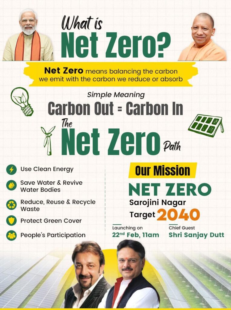 ‘नेट जीरो’ का सीधा और स्पष्ट अर्थ है— जितना कार्बन उत्सर्जन हो, उतना ही कार्बन कम या अवशोषित किया जाए। सरल शब्दों में कार्बन आउट = कार्बन इन। इस मिशन के तहत सरोजनीनगर को वर्ष 2040 तक ऐसा मॉडल क्षेत्र बनाने का लक्ष्य रखा गया है, जहां विकास और पर्यावरण के बीच संतुलन स्थापित हो सके।