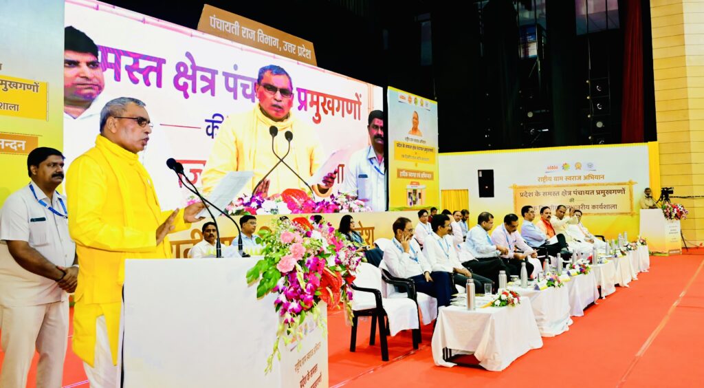 लखनऊ: उत्तर प्रदेश के पंचायतीराज, अल्पसंख्यक कल्याण, मुस्लिम वक्फ एवं हज मंत्री ओम प्रकाश राजभर की अध्यक्षता में आज लखनऊ के इन्दिरा गांधी प्रतिष्ठान के जुपिटर हॉल में क्षेत्र पंचायत प्रमुखों की एक दिवसीय प्रशिक्षण कार्यशाला का आयोजन किया गया। उन्होंने कहा कि सभी अधिकारी मेहनत पूर्वक कार्य कर रहे हैं। विभाग की तरफ से भी पूरा सहयोग मिलेगा। उन्होंने कहा कि स्वच्छ भारत मिशन के संबंध में जो निर्देश प्रधानमंत्री जी एवं मुख्यमंत्री जी द्वारा मिला है उसको धरातल पर उतारने में हम सभी को मिलकर सहयोग करना होगा। ‘स्वच्छता ही सेवा पखवाड़ा’ को सफल बनाने के लिए उन्होंने सभी क्षेत्र प्रमुखों को अपना अमूल्य सहयोग देने का आह्वान किया।
