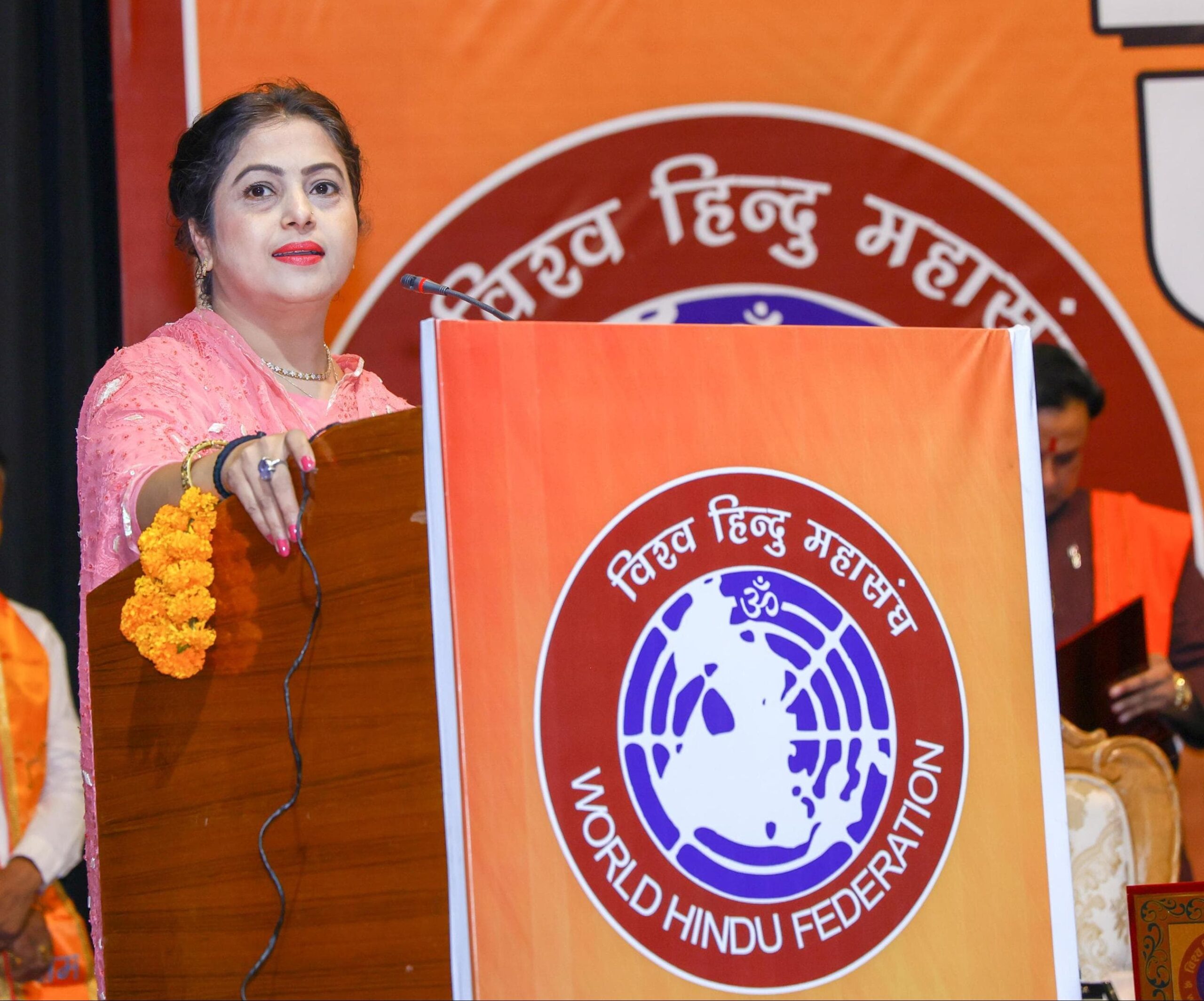 नई दिल्ली : सनातन धर्म और हिंदुत्व के मूल्यों के प्रसार के लिए कार्यरत विश्व हिंदू महासंघ के महिला प्रकोष्ठ की राष्ट्रीय अध्यक्ष एवं सुप्रीम कोर्ट की एडवोकेट रीना एन. सिंह ने रविवार को दिल्ली स्थित इस्कॉन मंदिर प्रांगण में आयोजित राष्ट्रीय सम्मेलन के दौरान तीन ऐतिहासिक प्रस्ताव रखे।
