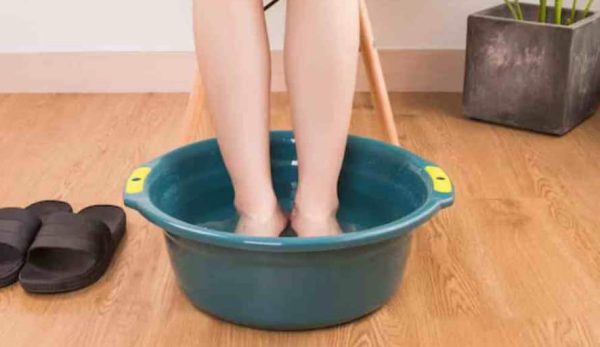 अब 10–15 मिनट तक पैरों को पानी में डुबोकर रखें।