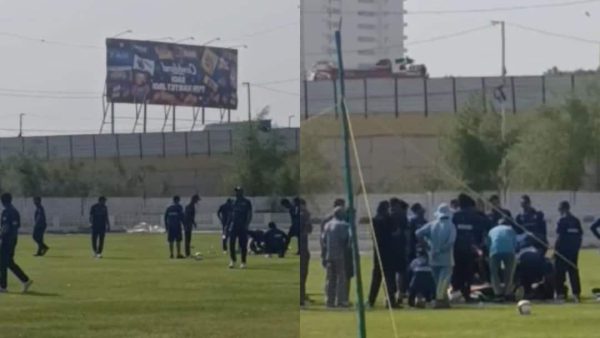 सोशल मीडिया पर इस घटना की तस्वीरें भी सामने आई हैं, जिनमें खिलाड़ी के गिरने के बाद मैदान पर लोगों की भीड़ देखी जा सकती है।