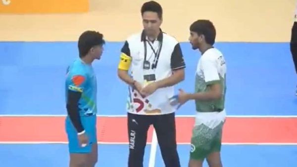 एशिया कप 2025 में सूर्यकुमार यादव ने पाकिस्तान टीम के कप्तान और फिर भारतीय टीम ने पाकिस्तान टीम से हाथ नहीं मिलाया तो काफी बवाल हुआ. फिर टीम इंडिया ने सुपर-4 और फाइनल मैच में भी ऐसा ही किया. अब ऐसा ही भारतीय कबड्डी टीम ने एशियाई यूथ गेम्स में किया, उन्होंने पाकिस्तान टीम के खिलाड़ियों से हाथ नहीं मिलाया. इसका वीडियो भी सोशल मीडिया पर वायरल है. एशिया कप की तरह इस मैच में भी भारत ने पाकिस्तान को हराया.